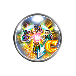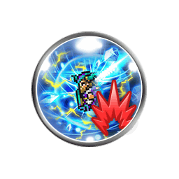 Fifteen single attacks (0.60 each), grants [Buff Ice 30% (15s)], [Buff Earth 30% (15s)], [Buff Lightning 30% (15s)], [Awoken Spellblade], [Damage Cap +10000] to the user, grants [50% Critical] to all allies, grants [High Quick Cast 1]/[High Quick Cast 2]/[100% Critical (25s)], [Critical Damage +50%] and [High Quick Cast 2] to all allies if 1/2/3 of Kelger, Galuf or Dorgann are alive |