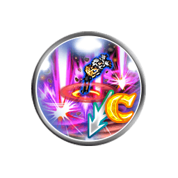 Fifteen single ranged attacks (0.60 each), causes [DEF, RES and MND -70% (8s)] if 0-3 FF7 allies are alive, grants [ATK, DEF, MAG and RES +30% (8s)] to all allies if 4+ FF7 are alive, grants [Attach Dark with Stacking], [Awoken Charismatic Ambition] and [Damage Cap +10000] to the user |