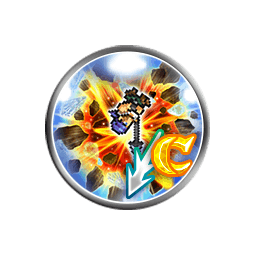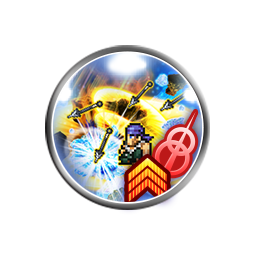Fifteen single ranged attacks (0.60 each), grants [Career Change Mode III (Ice, Earth, Water)], [Synchro Mode], [Damage Cap +10000] and [100% Critical 3] to the user, grants [100% Critical 3] to Laguna and Kiros if they are alive, grants [Critical Damage +50% 3] to the user, Laguna and Kiros if Laguna and Kiros are alive |