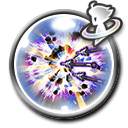 Seven single ranged attacks (2.60/2.80/2.90/3.00 each) capped at 19999/29999/49999/59999, followed by three single ranged piercing attacks (11.00 each) capped at 99999. Multiplier/cap requirements: 0-1/2-3/4+ VIII allies are alive/4+ VIII allies are alive and Laguna or Kiros is alive |