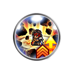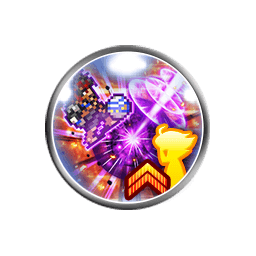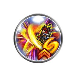 Seven single ranged attacks (0.90 each) capped at 19999, grants [Attach Dark 2 with Stacking]/[Attach Fire 2 with Stacking] based on entry element damage, [Damage Cap +10000], [Zenith Mode], [Zenith Mode: Jecht] to the user, grants [Physical Quick Cast 3]/[Physical Quick Cast] to party with at least 0-3/4 X members |